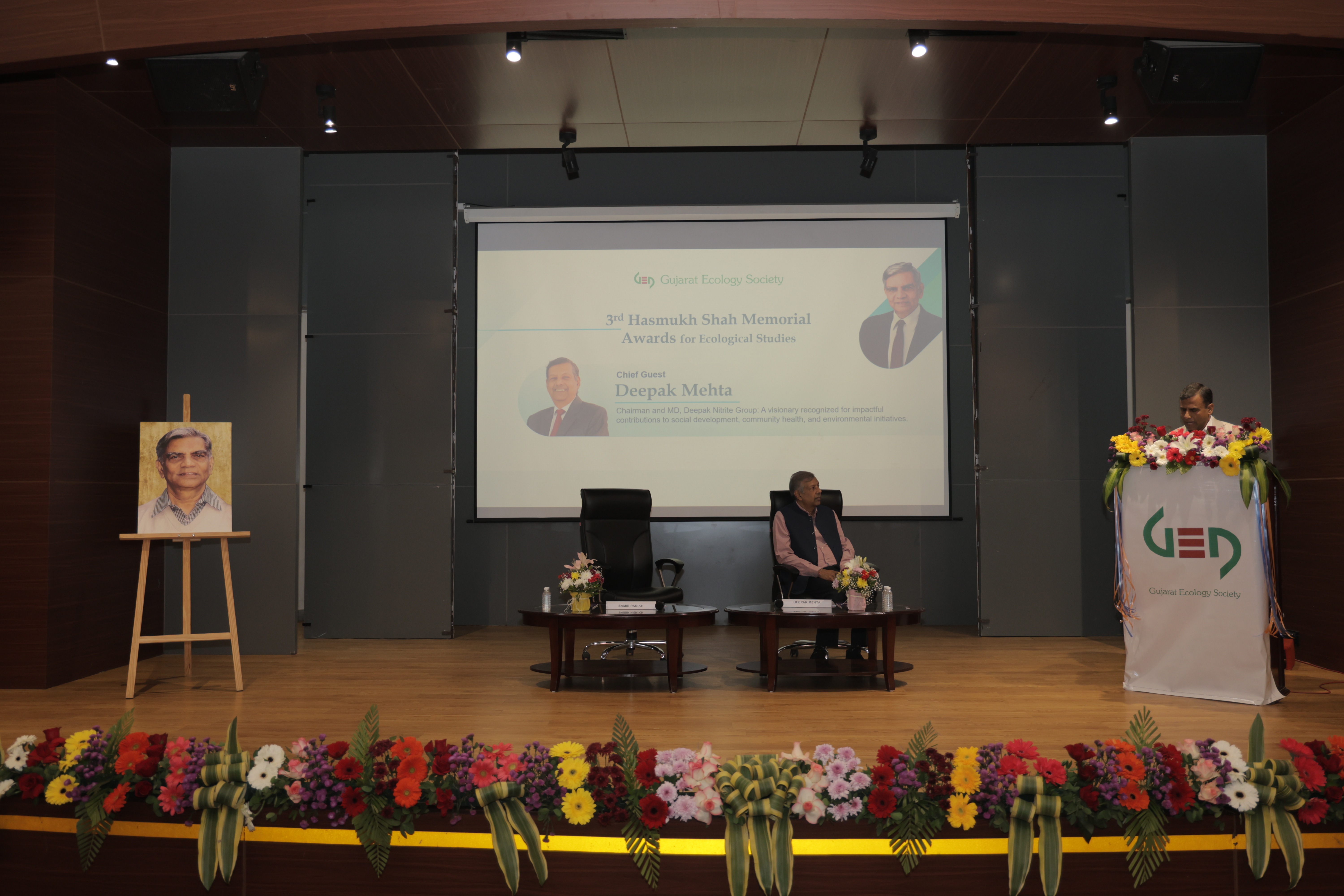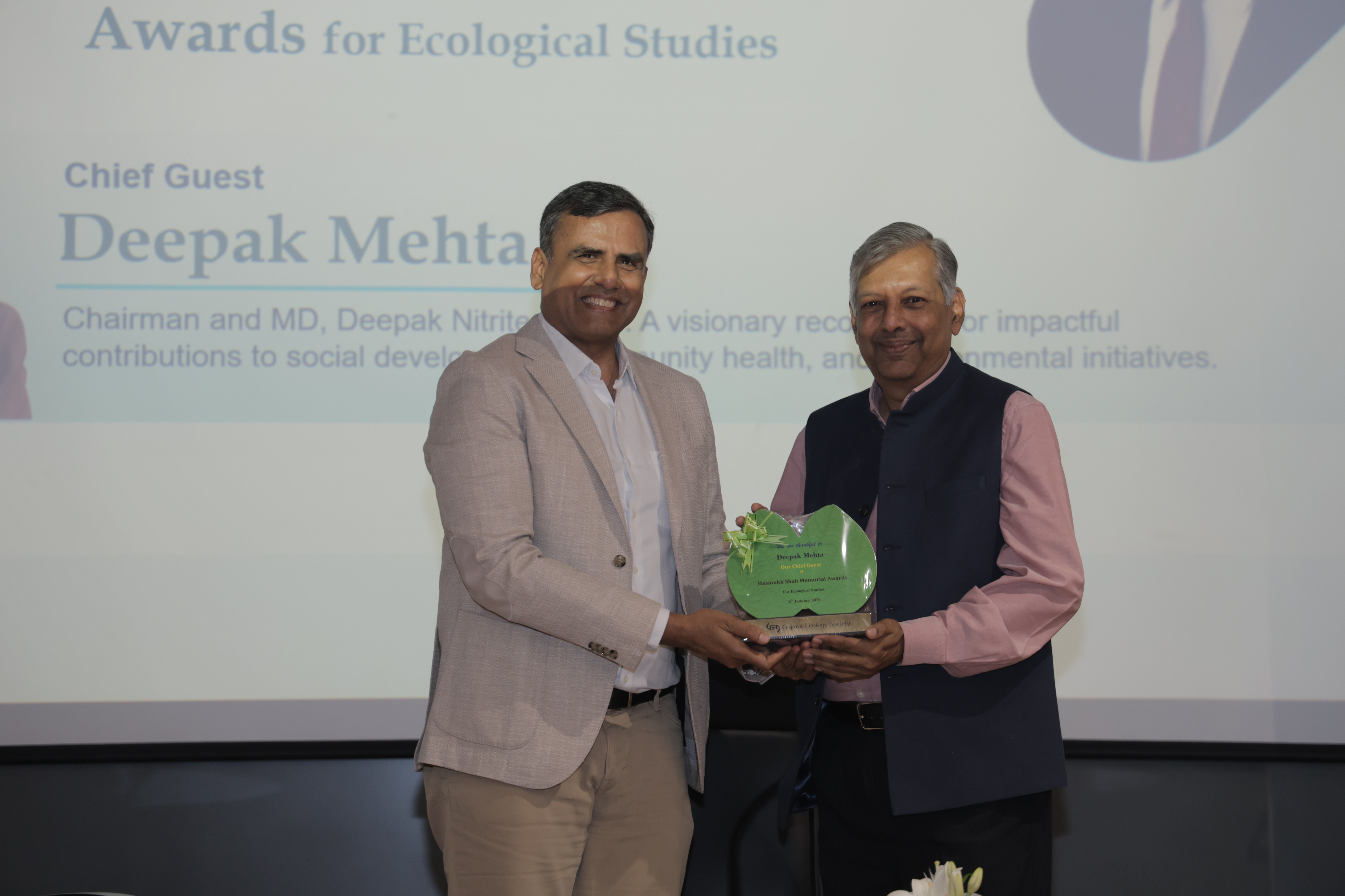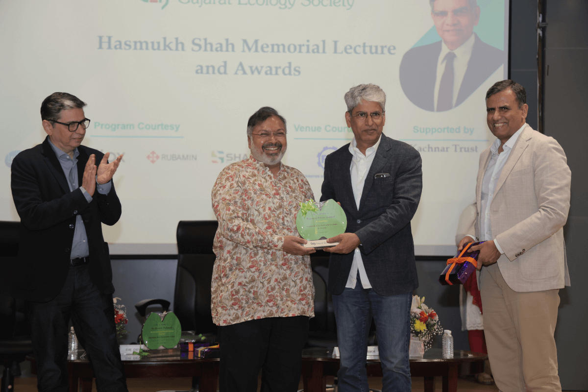 Hasmukh Shah Memorial Lecture and Awards 2025 Hasmukh Shah Memorial Lecture and Awards 2024 Gujarat Ecology Society Hasmukh Shah Memorial Lecture and Awards 2023 As a mark of our tribute to the legacy of Shri Hasmukh Bhai, the Gujarat Ecology Society launched the Annual Hasmukh Shah Memorial Lecture series. The First Hasmukh Shah Memorial Lecture was organized on 16th December 2022, at FGI, Vadodara