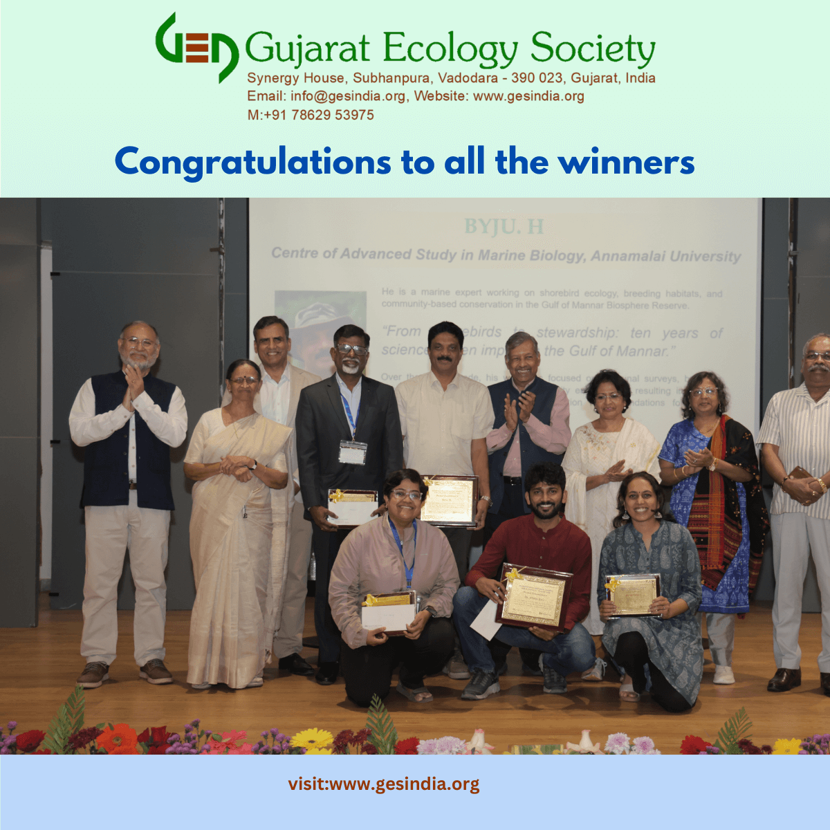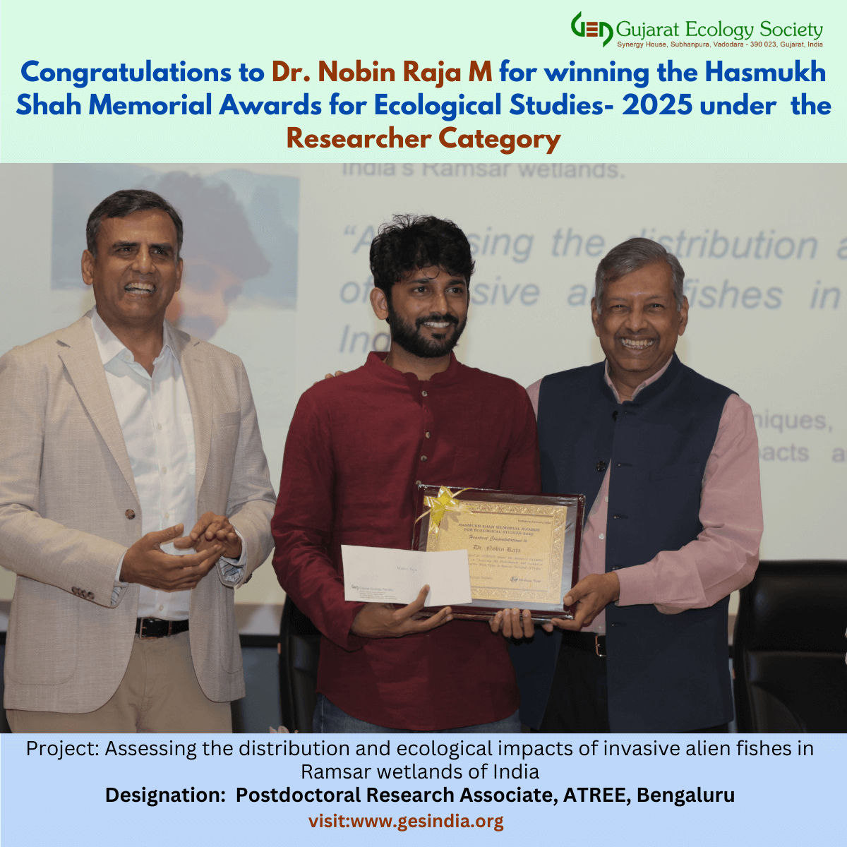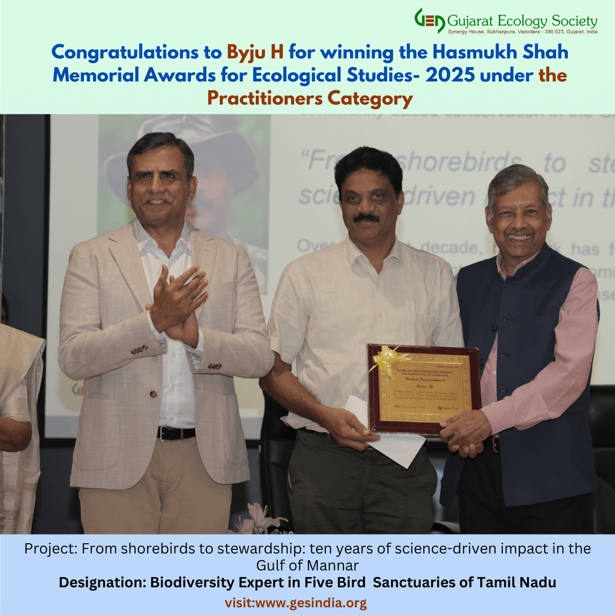 Hasmukh Shah Memorial Lecture and Awards 2025 Hasmukh Shah Memorial Lecture and Awards 2024 Gujarat Ecology Society Hasmukh Shah Memorial Lecture and Awards 2023 As a mark of our tribute to the legacy of Shri Hasmukh Bhai, the Gujarat Ecology Society launched the Annual Hasmukh Shah Memorial Lecture series. The First Hasmukh Shah Memorial Lecture was organized on 16th December 2022, at FGI, Vadodara